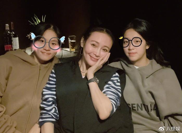 于明加开心晒出母女三人合照,幸福满意。于明加的两个女儿都完美遗传了妈妈美貌,母女仨都是高颜值。