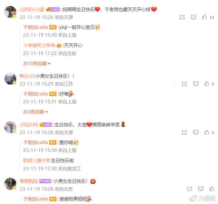 发文之后于明加还开心现身评论区与粉丝积极互动,一连回复粉丝多条留言的她,好心情一览无余。