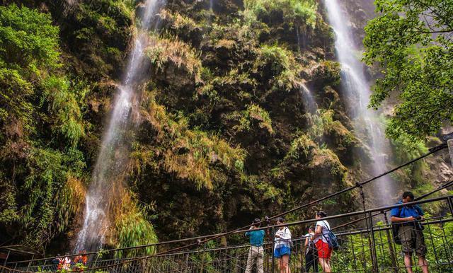 马岭河大峡谷的景色以奇、险、秀闻名遐迩,来过这里的人,大多数都会被马岭河峡谷的景色所震撼。 走进马岭河峡谷,看到最多的就是瀑布和溶洞。这里的瀑布数量之多,得用群来衡量,瀑布都是因为钙化物附着在岩石上慢慢形成的。大大小小的瀑布,看似杂乱无章,却让幽静的大峡谷多了一些层次感。夏天来到这里,人还没走近瀑布,就会被瀑布周围的水雾弄得透心凉,舒服得很。