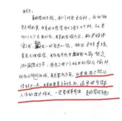 林先生;真的很对不起,你们对我这样好,我却做出这样的事,我真的不想害他们母子几个的,知道他们几个去世后,我真的后悔万分,都是赌博害了我,一时鬼迷心窍,做出了这样的事情真是天理难容,我在看守所里每天都在想念他们,度日如年。想起我们相处的那么愉快,现在又阴阳两隔,真是罪该万死,如果我死了能让你好过一点,我真的愿意去死,请多保重,人生的路还很长,一定要保重身体,真的很对不起。莫焕晶在庭审现场,当时她说自己与林生斌关系不一般时,林生斌情绪异常激动,拿起手边的保温杯砸向了莫焕晶,好似在掩盖什么。
