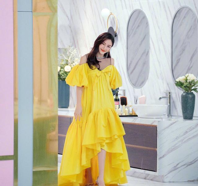 深V的设计露出傲人的事业线,小编看了都要流口水了。裙子的束腰设计和蓬起的裙摆,让她看起来像一位高贵的女王,不得不说这一身装扮真的高贵又性感。黄色礼服张雨绮参加综艺节目时穿了一件黄色的礼服裙,让她看起来更甜美了一些。即使是这种耀眼的黄色,她也能很好地驾驭。采用蝴蝶结抹胸和公主袖的设计,甜美可爱又有一点性感。裙摆下面采用了荷叶边的款式,前短后长的不规则剪裁设计很好的修饰了腿部线条。