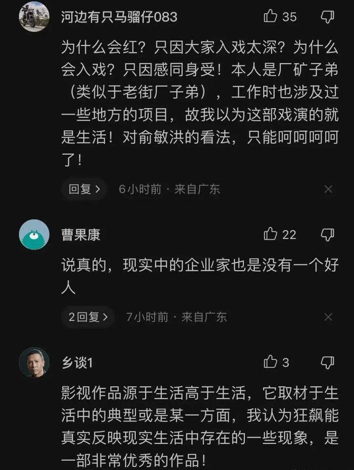 大家看网友真实评论,很多人认为,《狂飙》是中央政法委指导拍摄的电视剧,很多案例都是编剧翻阅卷宗,根据真实事件改编的。