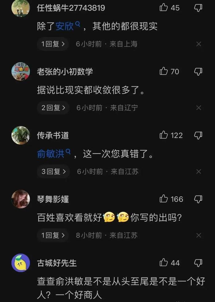 很多人认为,电视剧拍摄很好,俞敏洪是吹毛求疵,个人不喜欢,是自己的自由,作为公众人物,公开批评一部被广大观众高度认可的电视剧,难免有蹭热度的嫌疑!