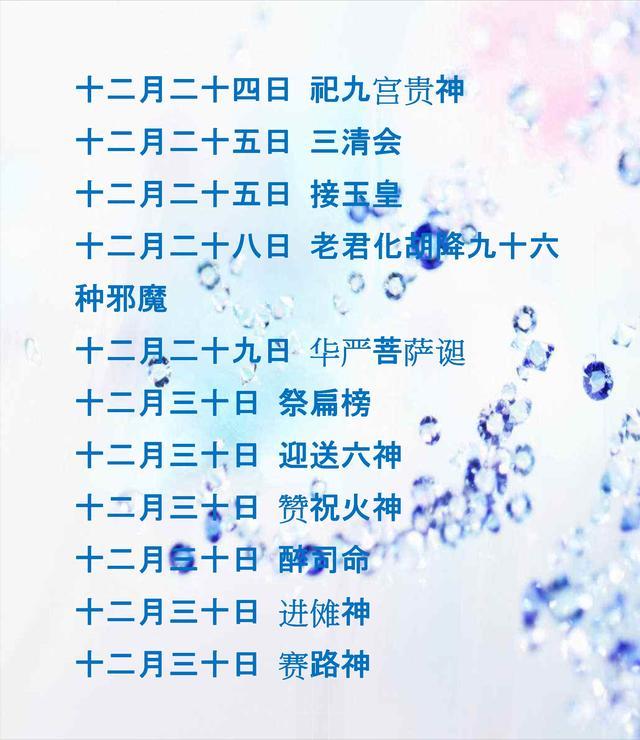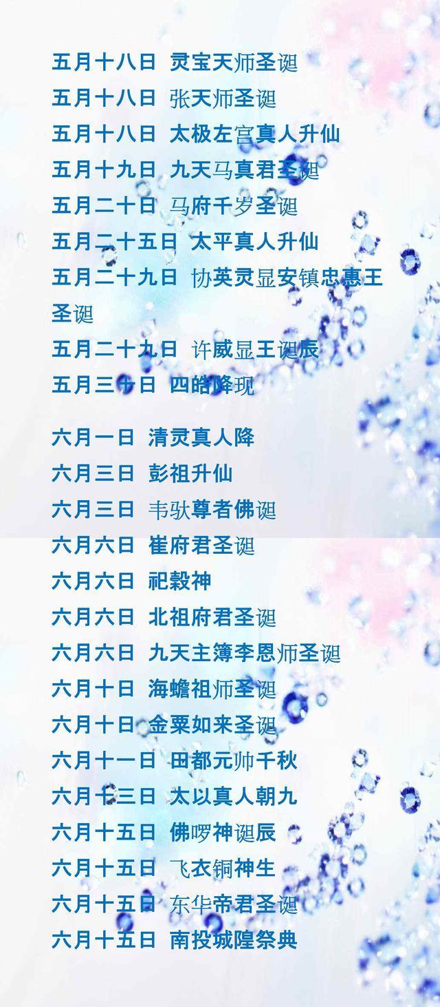 在民间传说中,我国有很多神仙,其中有我们熟悉的,比如玉皇大帝、元始天尊、弥勒尊佛、夏禹王等,也有我们不太熟悉的,比如宝胜佛、太古真君、东山佛祖等。而且,每一位神仙都有他的诞辰日,比如,元始天尊圣诞为一月一日;一月九日是玉皇大帝万寿;二月二十六日为赵子龙千秋……某天可能是好几位神仙的诞辰日,而有时,你会完美地错过任何神仙诞辰日。