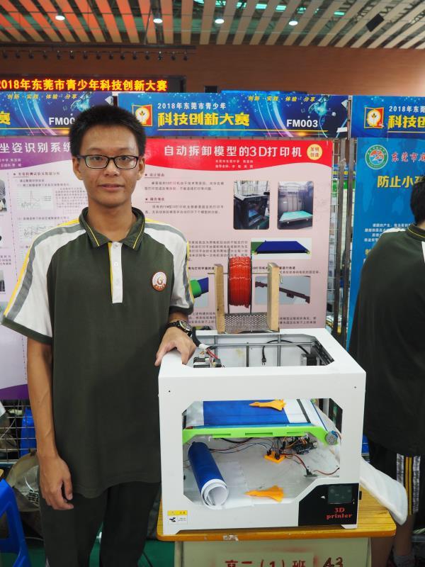 此后,陈嘉和还和李敏老师一起发明了“一种自动拆卸模型的3D打印机”,并获得了国家颁发的“实用新型专利证书”,通过改进美纹纸及3D打印平台,实现了打印模型的自动拆卸,降低了因拆卸模型时模型损坏的可能性,同时为实现连续自动打印提供了可能。