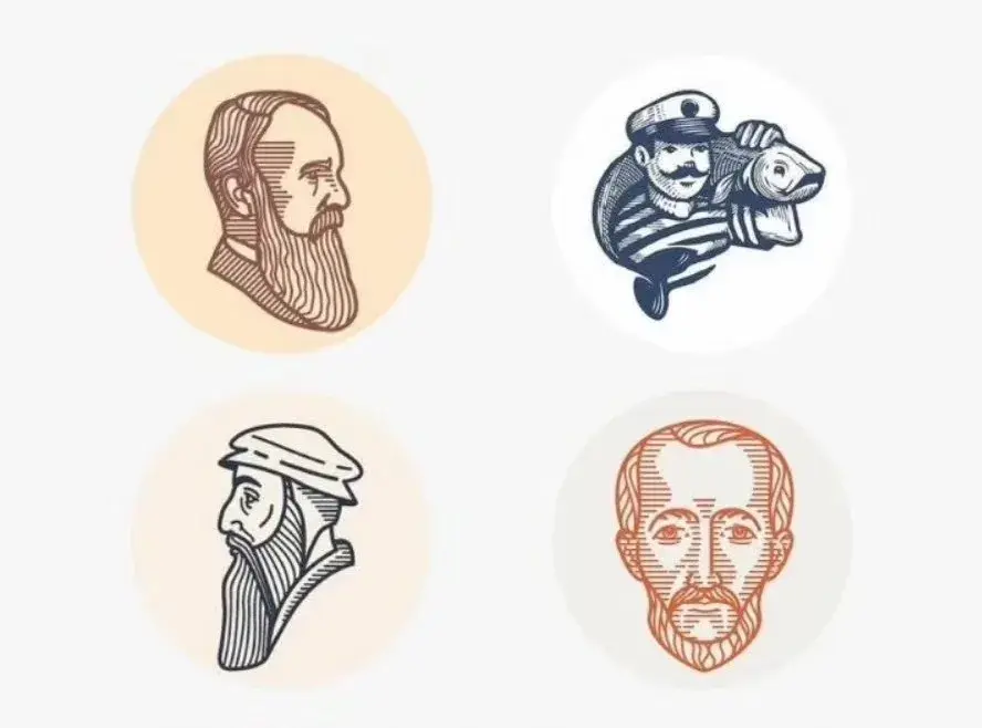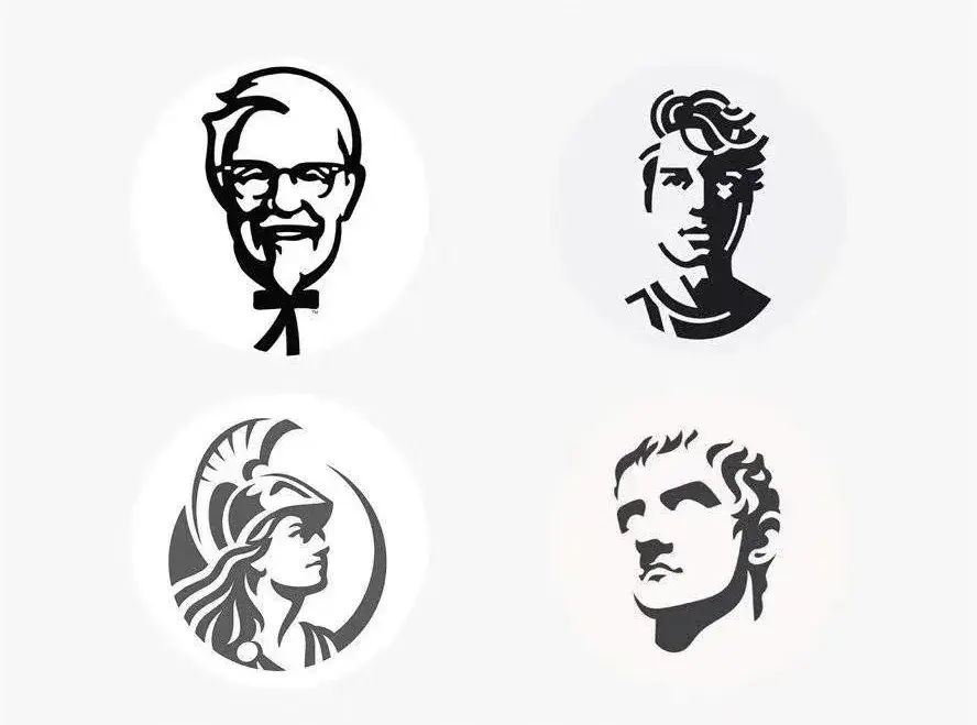 单色块面法就是通过色块来表达人物特征,对细节处理要求并不严格。在人像类LOGO中是最常使用,并且难度较低,人像也容易呈现。无论是中式、现代、美式风格都是可以轻松表现。