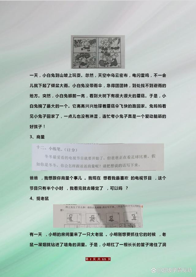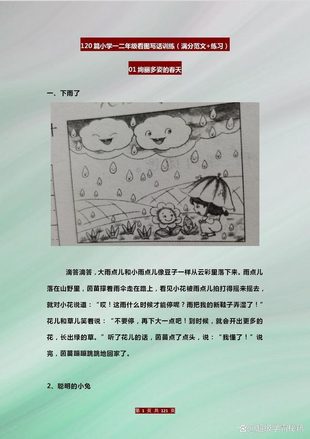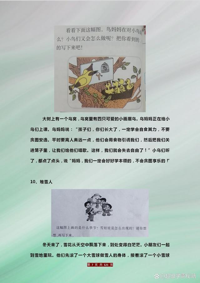 一年级看图写话120篇,打印积累好,考试多拿分!