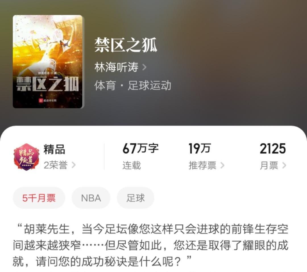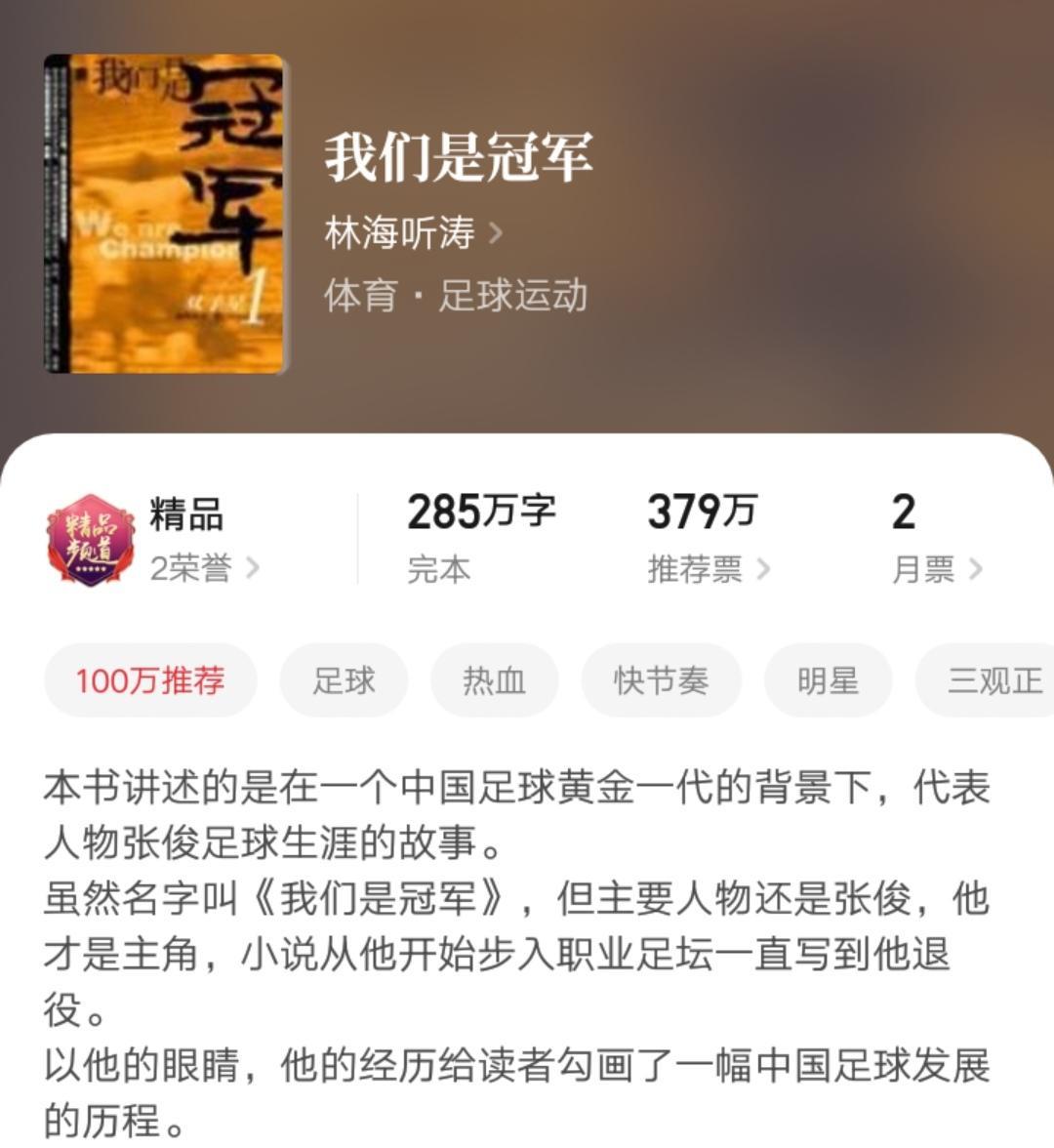 上架两个月,白金大神林海听涛的足球类转型新书终于达成精品了!