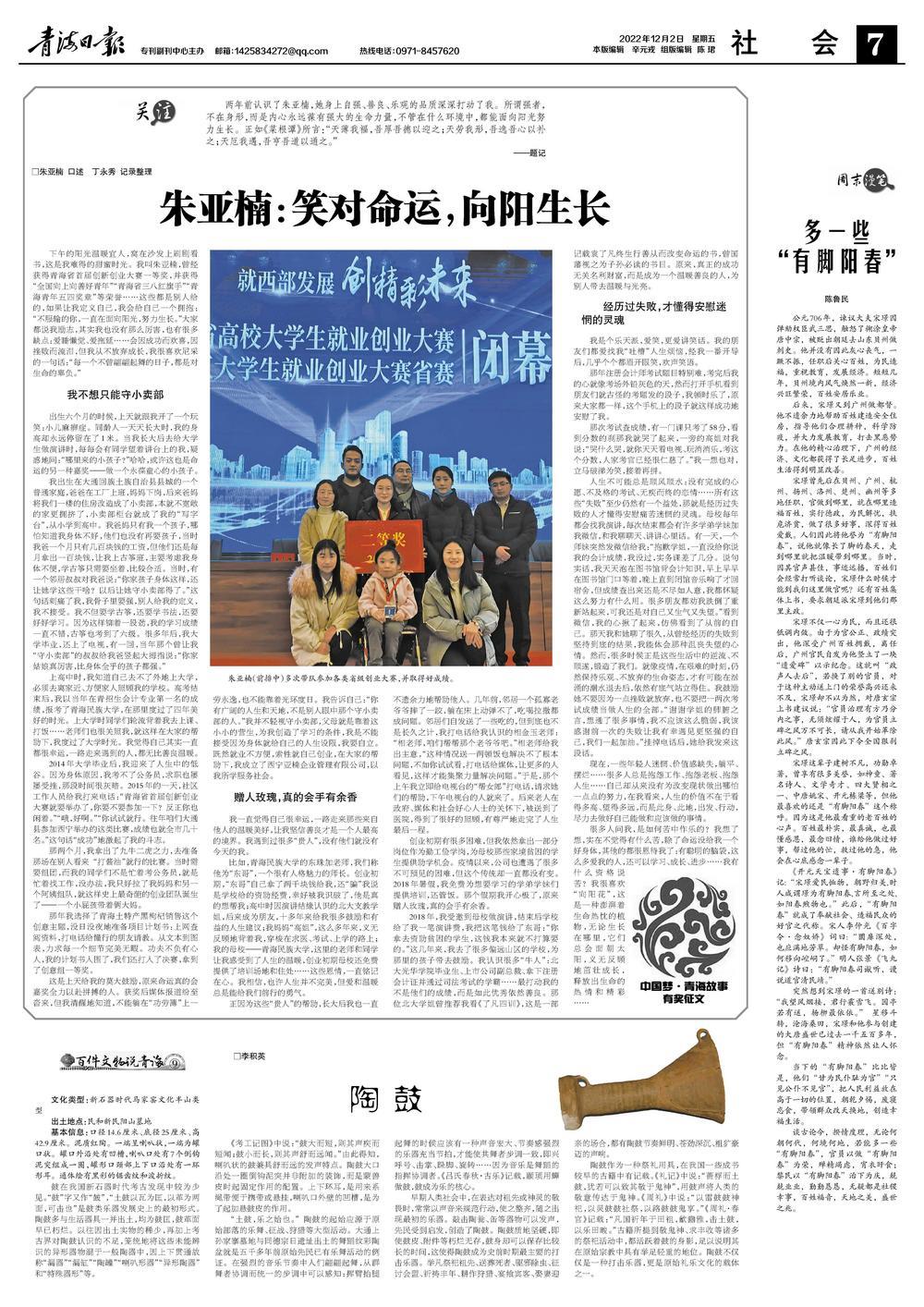 下午的阳光温暖宜人,窝在沙发上刷剧看书,这是我难得的甜蜜时光。我叫朱亚楠,曾经获得青海省首届创新创业大赛一等奖,并获得“全国向上向善好青年”“青海省三八红旗手”“青海青年五四奖章”等荣誉……这些都是别人给的,如果让我定义自己,我会给自己一个拥抱:“不服输的你,一直在面向阳光,努力生长。”大家都说我励志,其实我也没有那么厉害,也有很多缺点:爱睡懒觉、爱拖延……会因成功而欢喜,因挫败而流泪,但我从不放弃成长,我很喜欢尼采的一句话:“每一个不曾翩翩起舞的日子,都是对生命的辜负。”