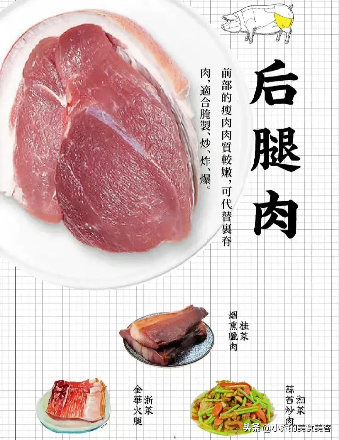 这肯定是不行的,因为肉看似差不多,不是瘦肉就是肥肉,或者是肥瘦相间的肉,但是部位不同,肉肯定是不一样的,不同部位的肉,肯定是适合不同的菜,不会分辨,这让很多人比较困惑。8张图,教你认识猪身不同部位的肉,从此再也不怕去菜市场买猪肉了。