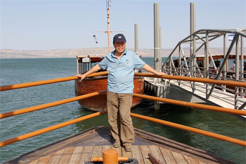 在加利利湖码头,我们登上了当地人按照《圣经》的记载,参照当年打捞上来的远古木船,仿造出耶稣在加利利湖上传经所乘的木船——“耶稣船”游览加利利湖,在木船缓缓开启时,一名船员拿出了一面五星红旗,伴随着国歌《义勇军进行曲》响起,鲜艳的五星红旗冉冉升上了桅杆,这一刻我为以色列人民对中国的友好而感动。