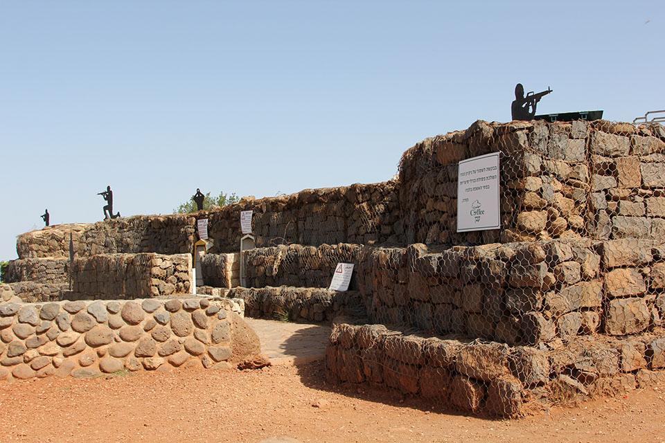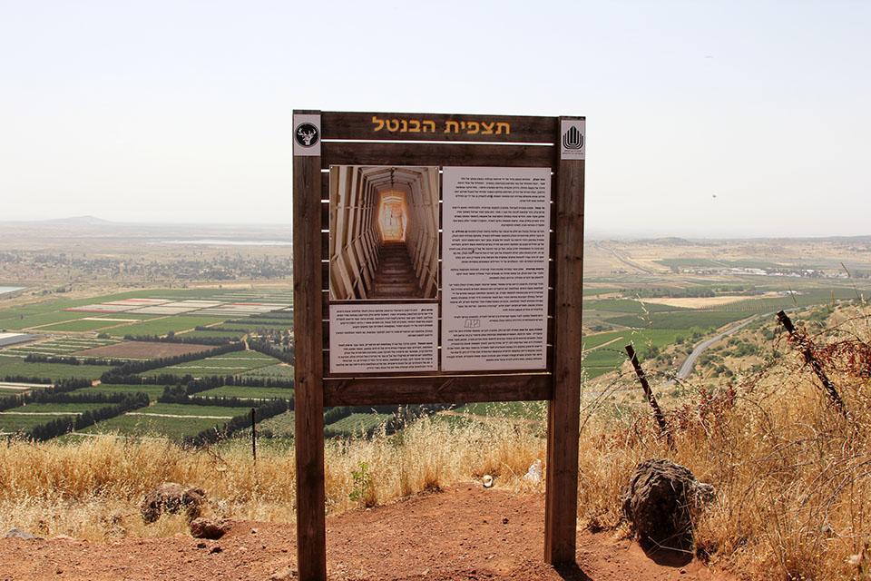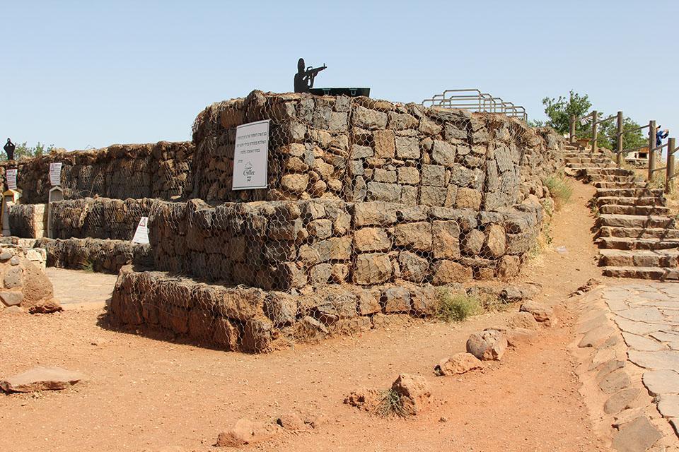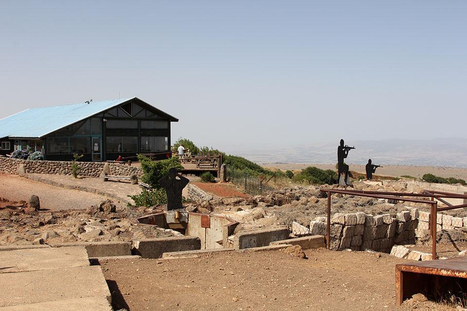 戈兰高地本塔尔山的山顶,那里有一片小小的开阔地,山头用岩石修建的掩体碉堡,周边是一些昔日战争留下来的战壕,依然保存完好。战壕里有一些站着或蹲着举枪射击的假人,其中有举枪待射的战士、也有举着望远镜的军官,给本塔尔山的这座山峰营造出了一种战场的氛围。这里坦克轰鸣已经消失、枪林炮雨已经不再,眼泪谷此时是那样的平静。然而,本塔尔山山顶有联合国停火观察员的哨所,联合国停火观察员依旧坚守在这里。