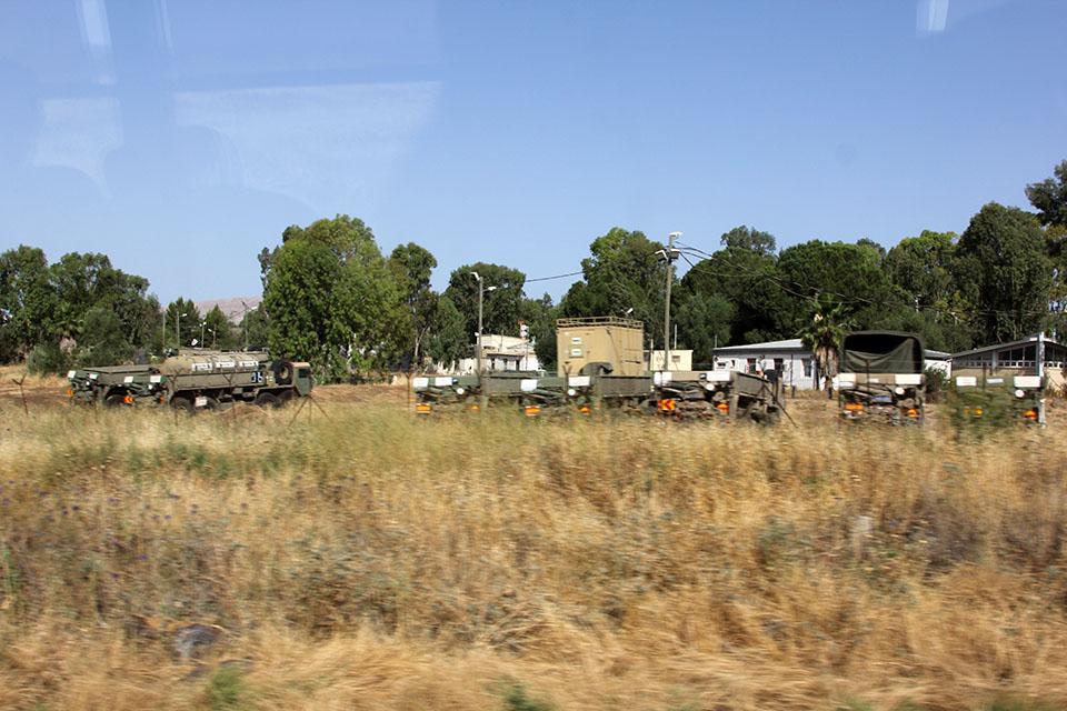 戈兰高地本塔尔山周边有很多的军事设施,道路两侧很多地方都拉着铁丝网,挂着警示牌,里面还有战争时期留下的地雷没有完全排除。许多地方还有战争遗留的痕迹,如战壕、掩体以及废弃的坦克等。山顶的沟壕及防空洞现在仍在使用,一旦两军交火这些都是军事阵地,这一切提醒着我们已经身处在军事控制区。