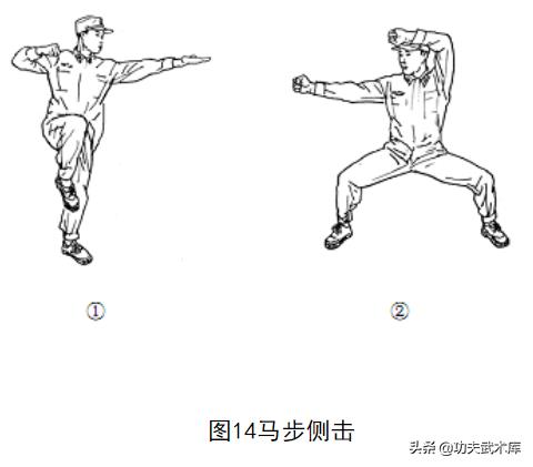 【动作要求】左脚撑地稳固,上架侧击迅猛协调。