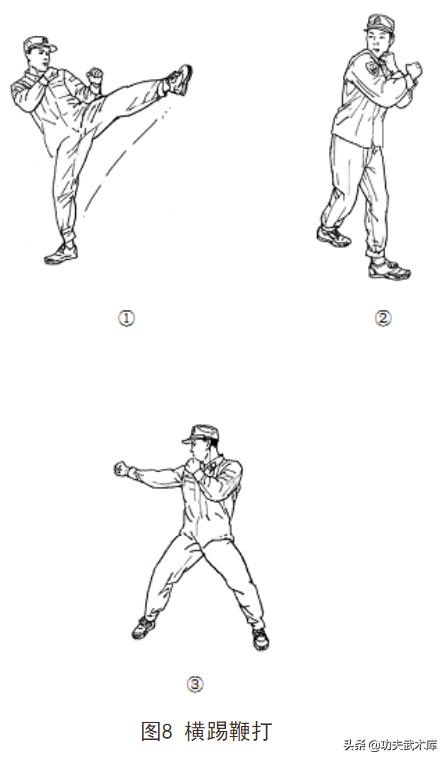 【动作用途】以横踢、鞭拳实施连续攻击。