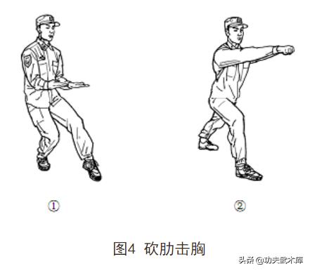 【动作用途】以双掌砍肋、双拳击胸实施连续攻击。