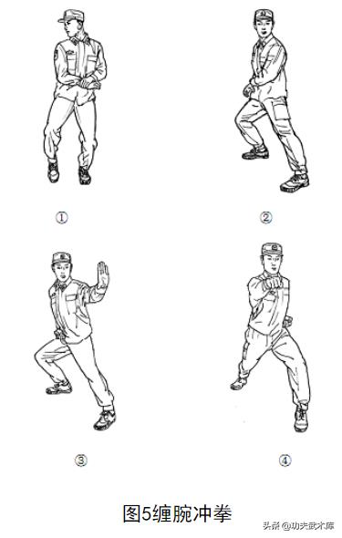 【动作要求】切腕迅猛,挡抓回拉与冲拳协调一致。