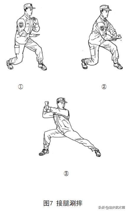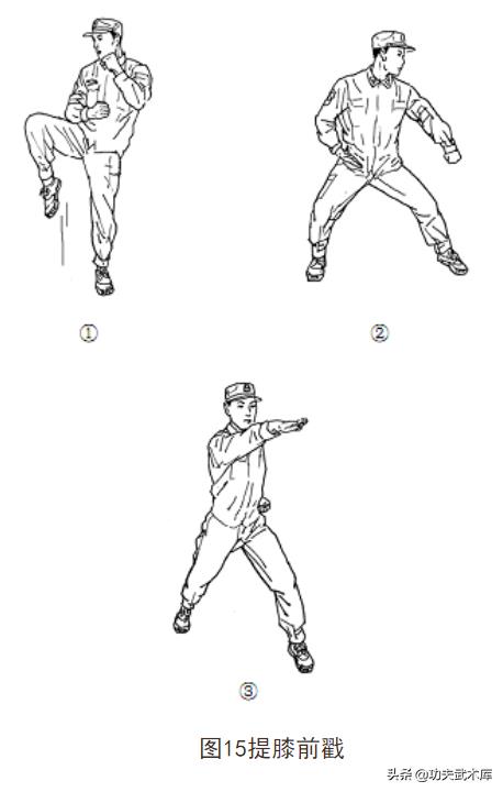 【动作用途】提膝防守,以插掌、侧击实施连续攻击。