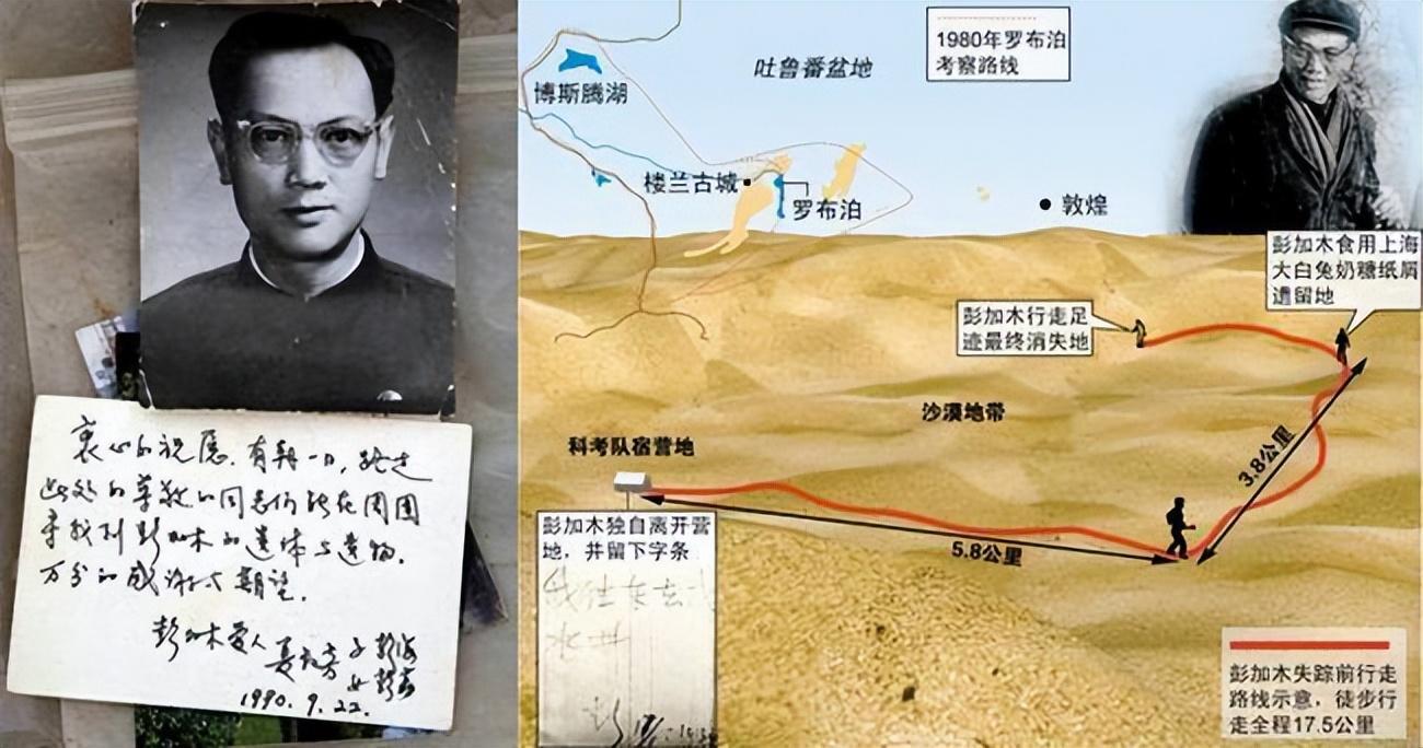 彭加木,当时是中国科学院新疆分院副院长,生物化学家,他率领一支科考队前往罗布泊进行考察,在那里他们发现了一座古城遗址,以及一些奇异的植物和动物。在这次考察中,彭加木突然失踪了,只留下一张纸条说他去东边找水井。尽管后来进行了多次搜寻,但都没有找到他的任何踪迹。这个事件引起了轩然大波,也引发了各种猜测和传说。