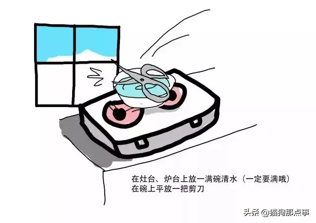 简单说:这是一个两点一线的问题,一个点是灶台上的剪刀,另一个点是猫咪要回来的入口,把这两点连线即可。家中的家具、格局、内墙、隔断等可忽略不用管。