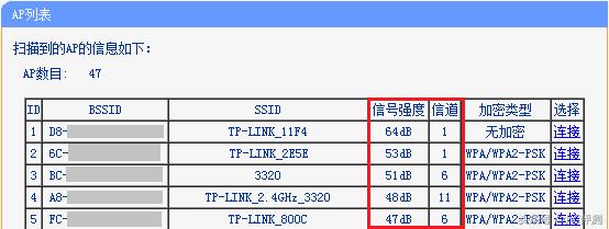 注意:信号强度以负数表示,其绝对值越小,表示信号越强。例如扫描的A信号强度为-45,B信号为-70,则A信号强于B信号。