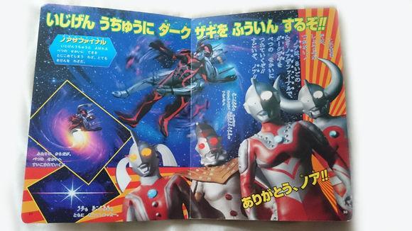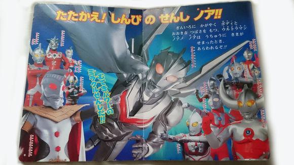 (诺亚)这次来营救泰罗了!诺亚从全身绽放出的光芒,使怪兽军团瞬间化为齑粉!(右侧蓝字)