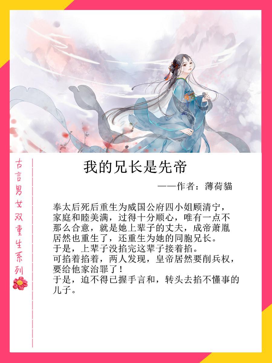 前世男女主因宠妃和女主弟弟之死(没死,这位弟弟在异国他乡想搞事情)离心,两人从至亲夫妻变成至疏夫妻。女主先重生在威国公府成为襁褓中龙凤胎的“妹妹”,男主在“哥哥”发烧后重生。前期女主没认出男主,觉得婴儿期会尿床的小屁孩不可能是死要面子的先皇,直到诸多迹象让女主不得不面对现实——前世冤家今生再聚,真的好气哦。但男主却带着愧疚弥补的心态想和女主发展感情,期间二者在儿女面前撕开马甲,并辅助性情温厚自带“祥瑞光环”的新帝儿子开创繁华盛世。