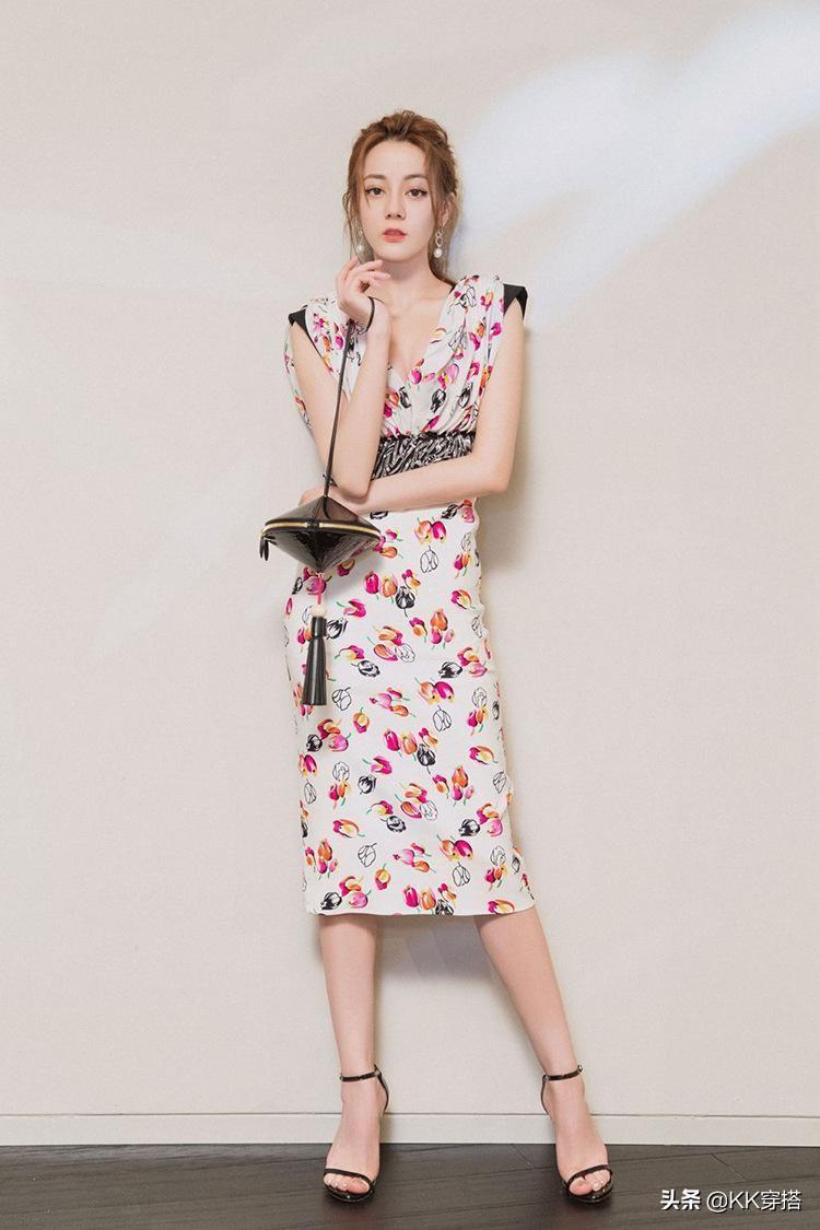 尽管这套连衣裙在热巴身上表现还可以,但这身小花朵的包臀裙总会有一种限制了热巴的穿搭功力发挥的感觉。在浪漫风格的人群身上,如果要想完全展现出气质来,还是需要有大花、大版型的风格来衬托。