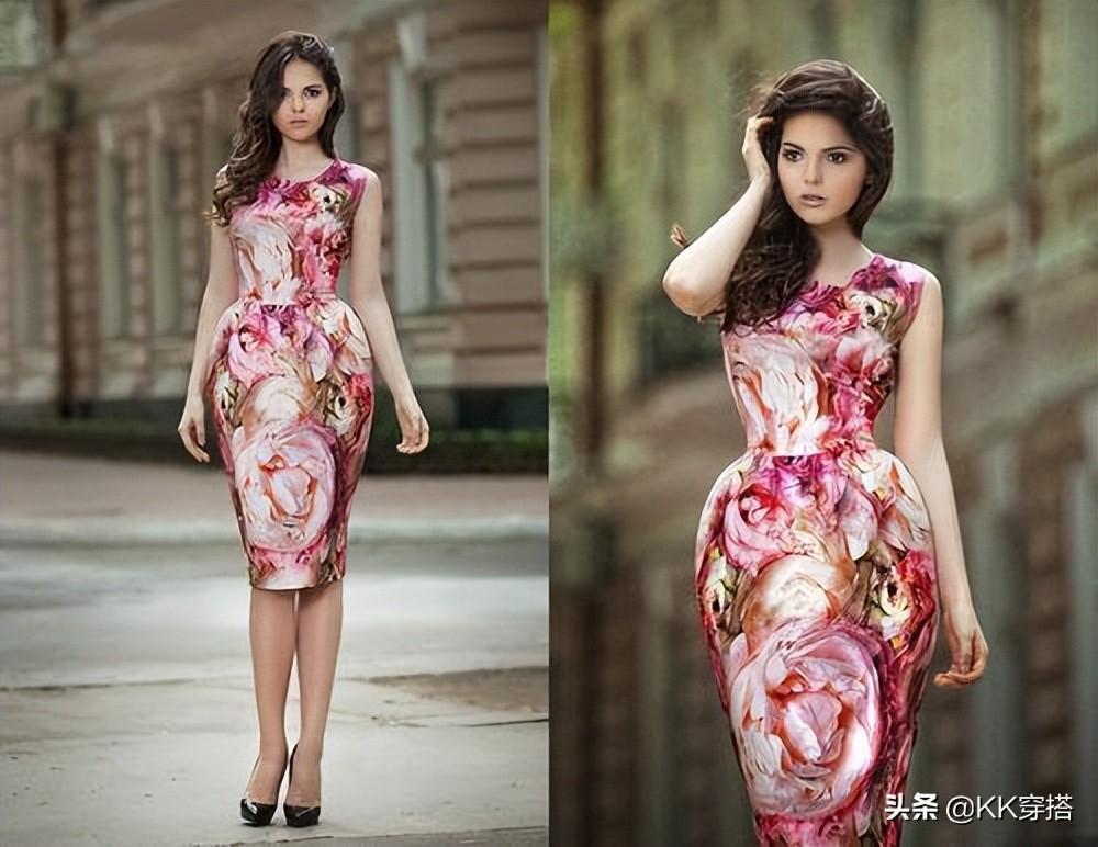 俄罗斯的时尚博主DOINA CIOBANU,是一个典型的少女风格的人,适合她的花裙子是需要小碎花、短款的,而这身大花的包臀裙,最适合的风格是具有成熟女人味的浪漫风格。小版型的风格,穿了大版型风格的花裙子,就像是小孩穿了大人的衣服一样。