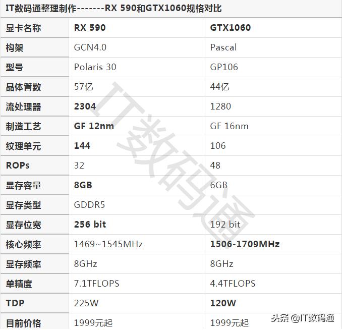 在今年11月15日晚间消息,AMD正式发布了今年最后一款新显卡---RX 590。这款显卡也是在台积电12nm制造工艺成熟情况下推出的,我们知道之前NVIDIA同样在12nm工艺下发布了三款全新Turing构架显卡。那么全新上市的RX590表现如何,还得靠市场检验。今天IT数码通小编要为大家带来的RX 590和GTX1060区别对比,通过对比评测来揭晓GTX1060和RX590哪个好。