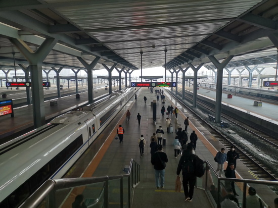 吞吐量虽然不饱和,但是车次已经比较多了。自2018年12月26日正式运营通车以来,经过几次车次调整。现在本站始发站的班次32个、途经站班次125个、终点站35个。向南可到达:上海、南宁、贵阳。向东可到达青岛、威海、烟台。向北到达北京。向西可到达太原和西安。四通八达,换乘便捷!