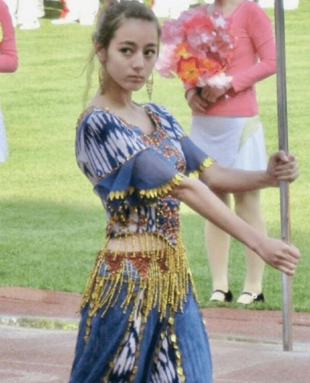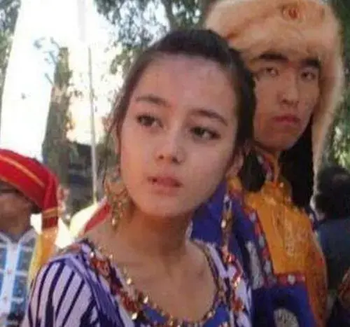 热巴可以看得出从小就长得很有新疆特色,五官立体,眼窝深邃,再加上传统的民族服饰和发型,也能看出来是美人胚子一个。