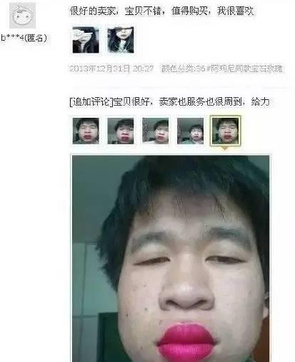 哈哈,小伙,你这口红涂的也很给力啊!这眼神真迷人!掌柜回复:送钱给你,求你把好评删了吧!