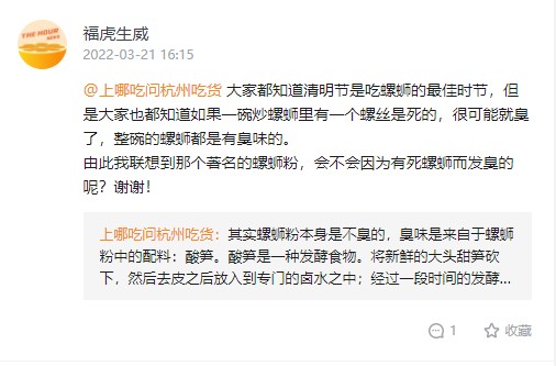 大家都知道清明节是吃螺蛳的最佳时节,但是大家也都知道如果一碗炒螺蛳里有一个螺丝是死的,很可能就臭了,整碗的螺蛳都是有臭味的。由此我联想到那个著名的螺蛳粉,会不会因为有死螺蛳而发臭的呢?谢谢!