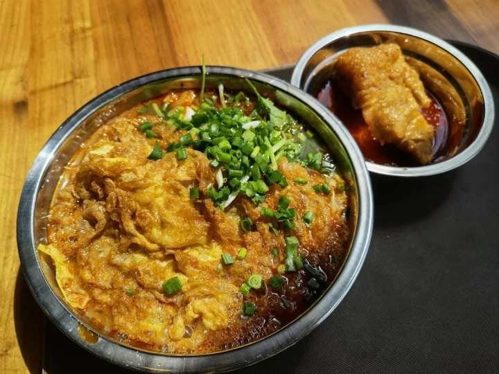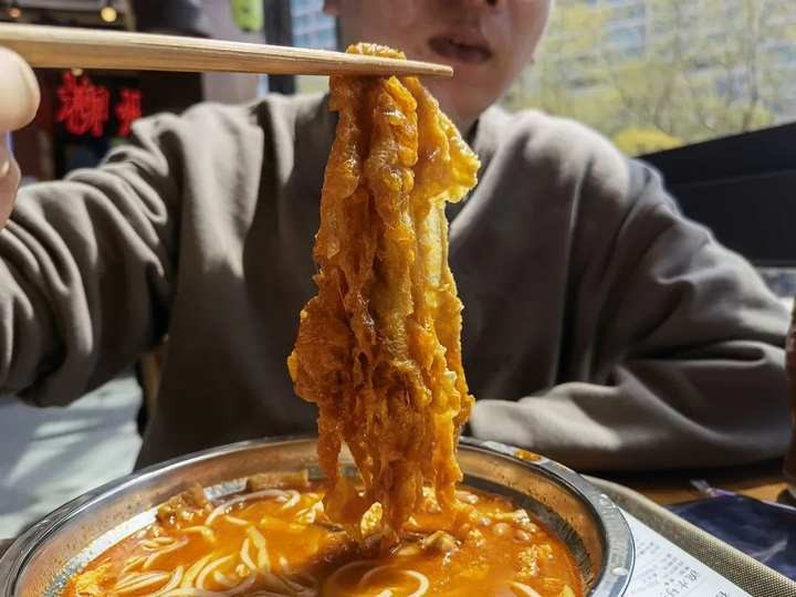 在白醋的加持上,这家店的汤口感也比之前那家鲜,而且顺带着炸蛋吸着了这个汤汁,口感也比之前那家店好。