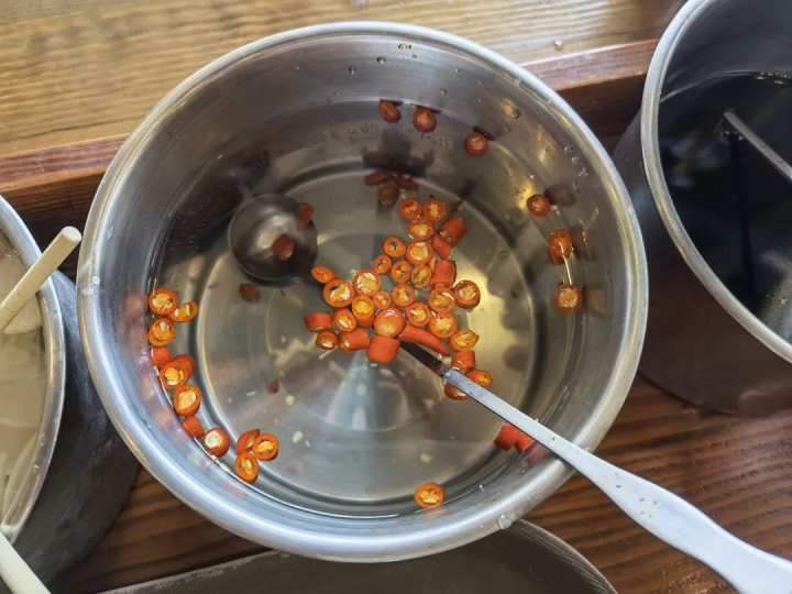 记者把这家店的照片发了朋友圈之后,报社的同事,以她是柳州人的身份,告诉我,这个钢碗,比较有柳州本地特点,随即给我推荐了一家她心目中在杭州No.1的一家螺蛳粉店,在嘉德广场。PS.我才不会说,其中有个原因是,她和店里的小哥用柳州话聊了聊,小哥原先是在柳州一些名店打过工。