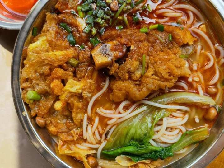 米粉爽口,汤微辣中带着鲜。炸蛋一定要点,其精髓是在汤里多泡泡。吸满了汤汁的炸蛋一口咬下满满都是汁水,非常juicy!猪脚也正如博主所说是非常的糯。