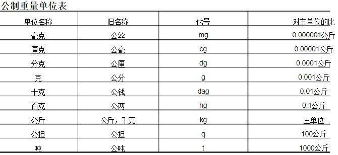 公斤和克是质量单位的国际通用【单位大小对比图】。公斤是千克的缩写,表示1千克,而克则是1公斤的千分之一,表示非常小的质量。