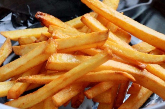 木薯淀粉可以炸东西,可食用的木薯淀粉可以用来炸薯条。准备好食材之后,将土豆去皮切成条状浸泡,用热水煮至八分熟之后捞出浸泡在牛奶里,捞出土豆条后裹上木薯淀粉即可开始油炸,炸至土豆条变金黄色即可出锅。