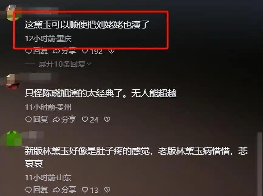 说起林黛玉,大家心中都有一个形象,这个形象基本上都是跟陈晓旭的林黛玉挂钩的,陈晓旭在86版《红楼梦》中的林黛玉,可以说是演绎得淋漓尽致了,看过的观众都难以忘怀,所以当有新版《红楼梦》拍摄时,观众也都希望能有一个气质古韵的林妹妹出现。可是当真正看到新版《红楼梦》中的林黛玉时,网友:还是老版的好看!