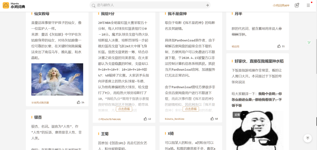 分别为:全历史、知妖、菜鸟教程和小鸡词典