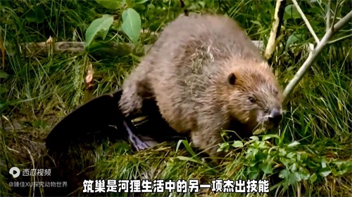 2. 河里的尾巴扁平而宽大,犹如一块坚韧的脚,既用于游泳,又在伐树时起到平衡的作用。它们那对强壮的前肢和锐利的门牙,使得河里成为自然界中无与伦比的伐木能手。