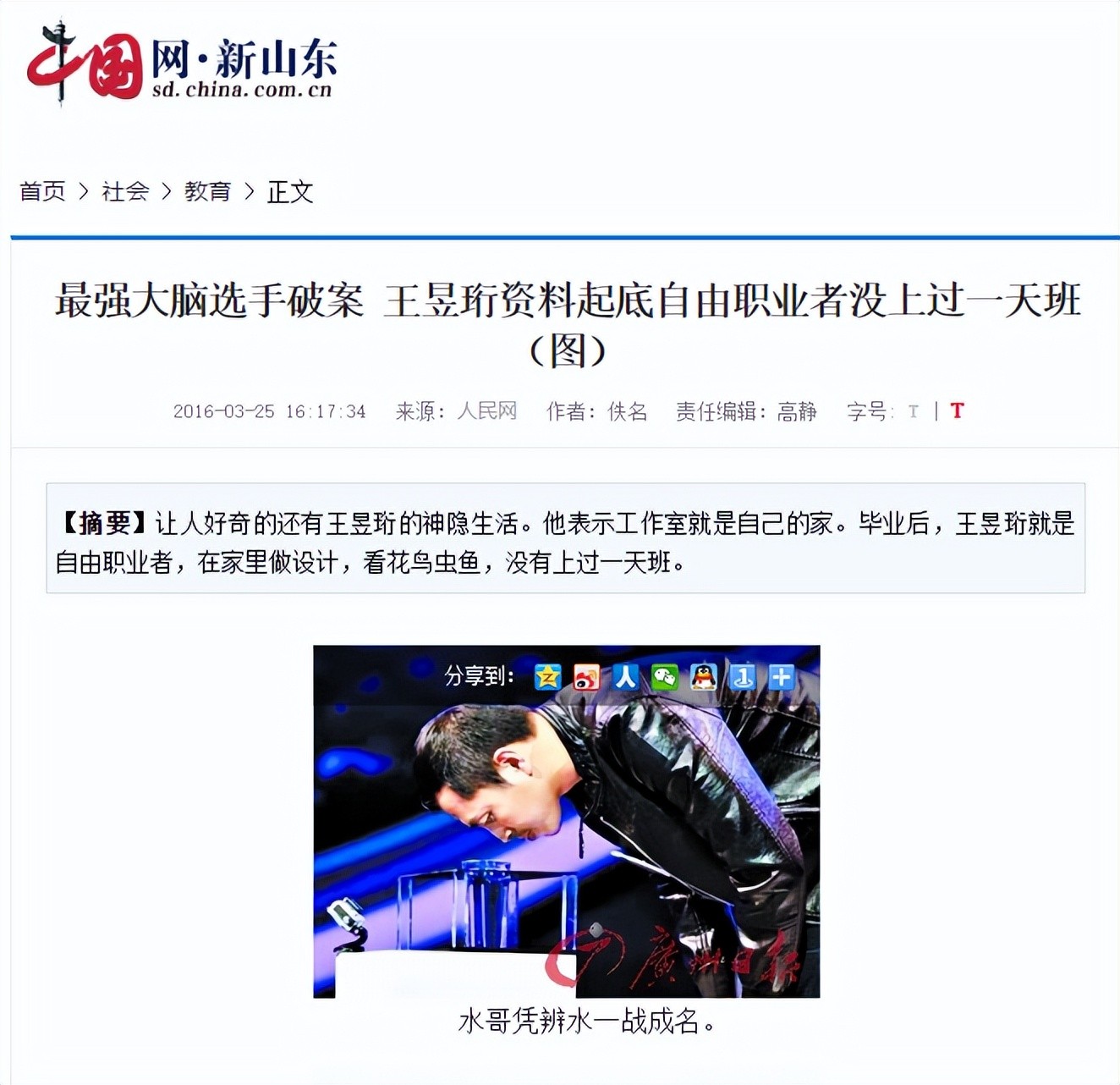 最强大脑选手破案 王昱珩资料起底自由职业者没上过一天班(图) - 中国网山东教育 - 中国网 • 山东