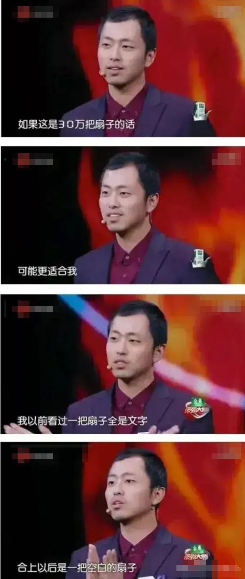 而他赛后那句意味深长的话语 “其实 30 万把扇子更适合我,我看过一把全是字的扇子,和尚以后是一把空白的”,更是巧妙地将比赛的意义升华,既彰显了他对比赛的绝对自信,又饱含着深深的爱国情怀。
