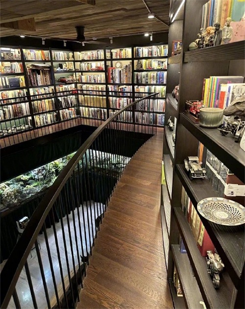家中的设计独具匠心,有梦幻般的水池、藏书墙、化石和模型等,仿佛一个小型的博物馆,处处彰显着他对自然和艺术的热爱。