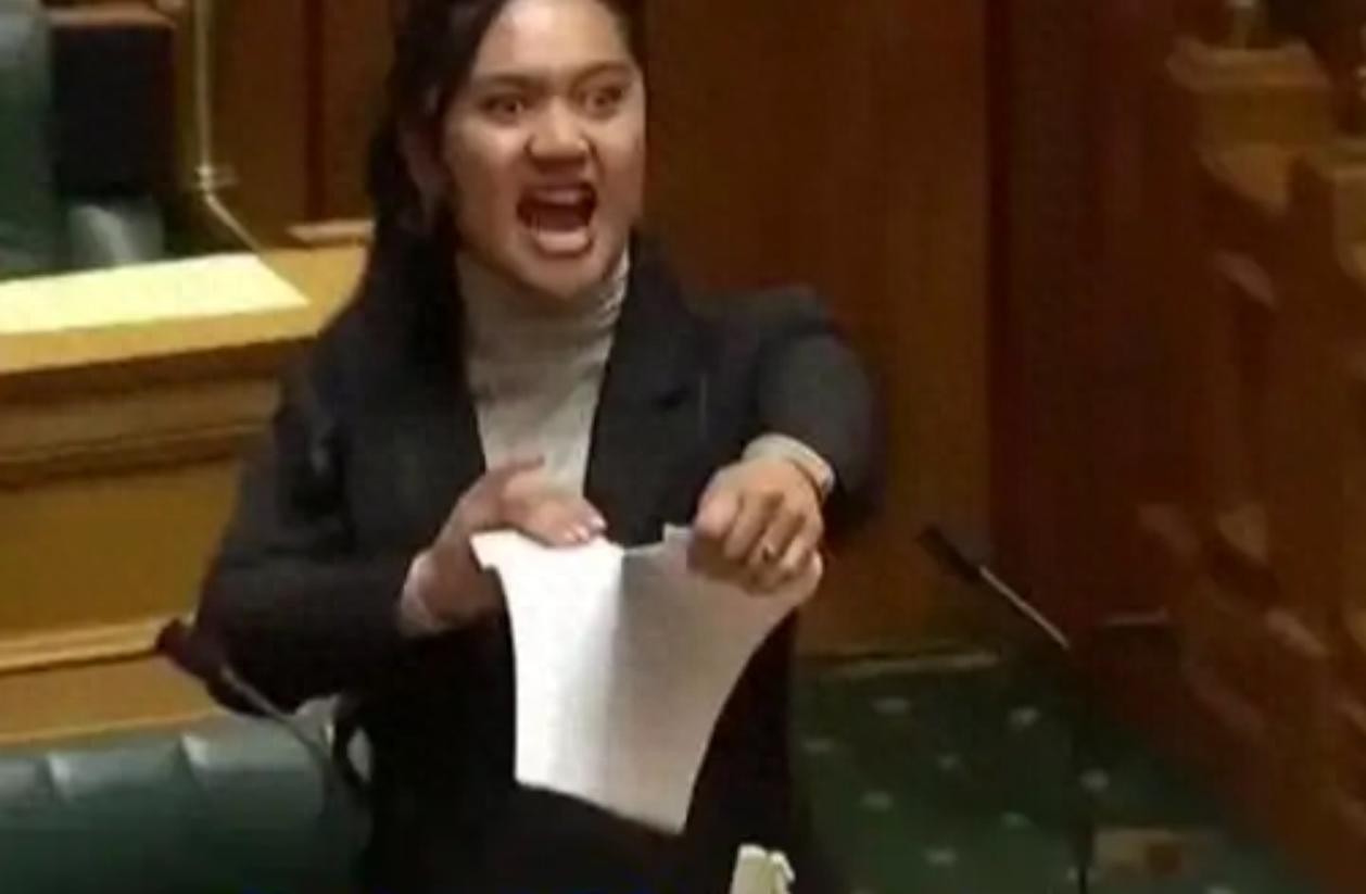 200多年后,“长白云之乡”的议会大厅,22岁的毛利女议员当众撕碎法案,跳起哈卡战舞,呐喊声震天。