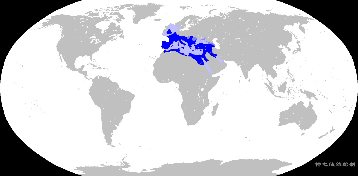 然而,罗马共和国在公元前90-前30年陆续发生了同盟者战争、三次米特里达梯战争、两次苏拉内战、塞多留之乱、斯巴达克斯起义、两次帕提亚战争、高卢战争、恺撒内战、西西里起义、解放者战争、佩鲁西亚战争和奥古斯都内战等一系列内外战争,导致其欧洲大帝国的身份在这段时期起起伏伏、不时中断。值得一提的是,盖乌斯·凯撒在高卢战争中征服了整个高卢地区,就此将欧陆上的凯尔特人也纳入到了西方文明之中,并进一步在公元前55-前54年两次进军不列颠群岛。也就在这时,罗马共和国达到了其版图和势力范围的巅峰。