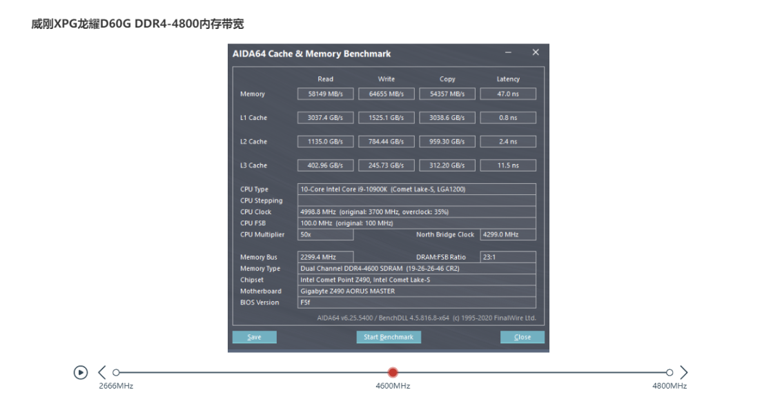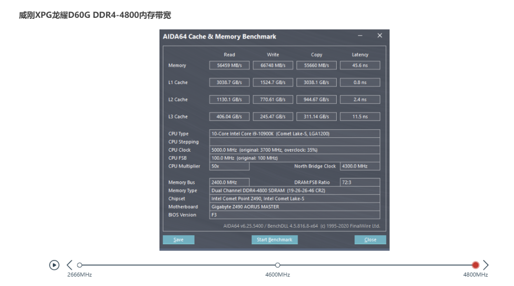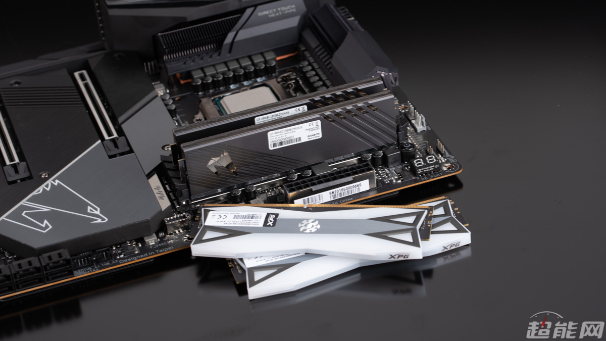 技嘉Z490 AORUS MASTER是支持DDR4-4800+的内存的,所以我们找来了两套DDR4-4800的内存,分别是威刚XPG龙耀D60G和技嘉的AORUS内存,当然这种频率的内存市场上还是比较少见的,目前比较常见的高频内存还是DDR4-3200/3600的。