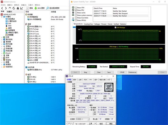最终你会摸索到CPU的最佳电压点,我们这个Core i9-10900K就能以1.356V超到5.2GHz并通过AIDA 64 FPU烤机测试。