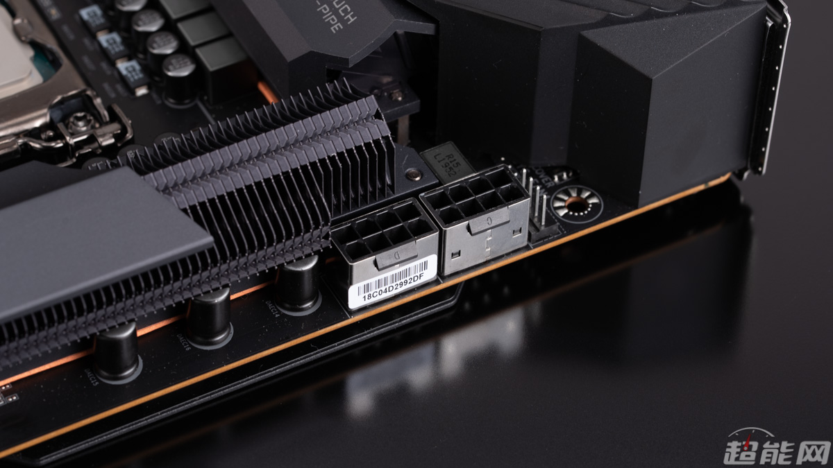 主板采用14+1相数字供电设计,当中CPU核心14相,每相都配备90A的Mosfet,并且在二级滤波电容有采用部分钽电容,为CPU超频提供强劲的电力支持。主板采用第二代堆栈式鳍片散热器,新的设计有一个特殊的二级结构,使流经鳍片的气流可以从鳍片的前缘进入,然后由其他百叶窗和鳍片引导,这种设计可以极大的提高热量传输性能,并配备更粗的8mm直径直触式热管强化供电散热,采用新的制造工艺,缩小热管与散热器之间的间隙,大大的提高了热传输效率。